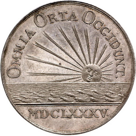 Los-Nummer: Auktion 51 - 3094 Ausländische Münzen und Medaillen Großbritannien Charles II. 1660-1685, Medaille 1685. Auf seinen Tod. Brustbild im Stil des Herakles nach rechts / Meer mit untergehender Sonne. Franks 288, van Loon III,301, Eimer 269. 49 mm, 48,83 g. Prachtexemplar. Vorzüglich - Stempelglanz Schätzpreis: 1500,- Zuschlag: 1600,- |