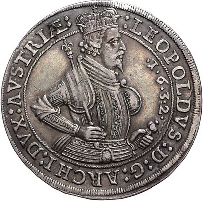 Los-Nummer: Auktion 51 - 2034 Haus Habsburg Haus Habsburg Erzherzog Leopold V. 1619-1632, Taler 1632, Hall. Voglhuber 183/4, Davenport 3338, Moser/Tursky 473. Sehr schön Schätzpreis: 150,- Zuschlag: 145,- |