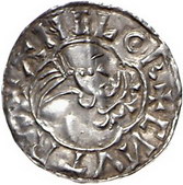 Los-Nummer: Auktion 51 - 3075 Ausländische Münzen und Medaillen Großbritannien Cnut 1016-1035, Penny, Lewes. 0,82 g. Münzmeister Leofwine (+LE-ODV-INEO-NLE). Quatrefoil type. North 781, Seaby 1157. Stärker gewellt, sehr schön Schätzpreis: 100,- Zuschlag: 250,- |
