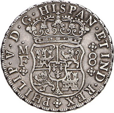 Los-Nummer: Auktion 51 - 3428 Ausländische Münzen und Medaillen Mexiko Felipe V. 1700-1746, 8 Reales 1738, Mexiko. Calicó/Trigo 701, K.M. 103. Sehr schön + Schätzpreis: 250,- Zuschlag: unverkauft |