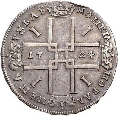 Los-Nummer: Auktion 51 - 3683 Ausländische Münzen und Medaillen Russland Peter der Große 1689-1725, Rubel 1724, Moskau. Diakov 2.2.21, Davenport 1660. Feilspuren am Rand, üblicher winz. Stempelfehler, sehr schön Schätzpreis: 300,- Zuschlag: 450,- |