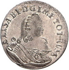 Los-Nummer: Auktion 51 - 3709 Ausländische Münzen und Medaillen Russland Elisabeth I. Petrowna 1741-1761, 6 Gröscher 1761, Königsberg. Russische Besetzung. Drei Haarlocken auf der Schulter. Diakov 724-726 , Olding 454 a. Prachtexemplar. Prägeschwäche, vorzüglich + Schätzpreis: 400,- Zuschlag: unverkauft |