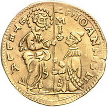 Los-Nummer: Auktion 51 - 3408 Ausländische Münzen und Medaillen Malta Jean de la Vallete 1557-1568, Zecchino. Heiliger und kniender Doge / Christus in Mandorla. Restelli/Sammut 1, Friedberg 9. GOLD. Henkelspur, sehr schön Schätzpreis: 600,- Zuschlag: 570,- |