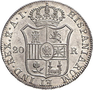 Los-Nummer: Auktion 51 - 4025 Ausländische Münzen und Medaillen Spanien Joseph Napoleon Bonaparte 1808-1814, 20 Reales 1811 AI, Madrid. Calicó/Trigo 26, Davenport 308. Prachtexemplar. Fast Stempelglanz Schätzpreis: 750,- Zuschlag: unverkauft |