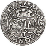 Los-Nummer: Auktion 51 - 2854 Ausländische Münzen und Medaillen Baltikum-Litauen Sigismund August von Polen 1547-1572, 2 Groschen 1565. Gumowski 617, Kopicki 3299 (R5). Sehr selten. Randfehler, fast sehr schön Schätzpreis: 900,- Zuschlag: 1200,- |