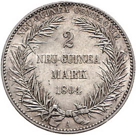 Los-Nummer: Auktion 51 - 2766 Kolonien und Nebengebiete Neuguinea 2 Mark 1894 A. Jaeger 706. Vorzüglich Schätzpreis: 500,- Zuschlag: unverkauft |