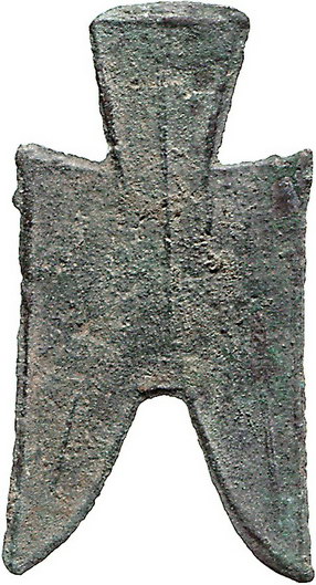 Los-Nummer: Auktion 51 - 2929 Ausländische Münzen und Medaillen China Chou Dynastie 1122-255 v. Chr. Halbwertiges spitzfüßiges Spatengeld, Bronze. Wert 1/2 Chin. Inschrift: 'Szu Shi' (Seiden Klan). Schjöth vergl. 40, Coole 4981. 55 x 29,5 mm, 6,42 g. Grünliche Patina. Dünnes Exemplar mit scharfen Rändern. Sehr schön - vorzüglich Schätzpreis: 75,- Zuschlag: 100,- |