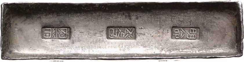 Los-Nummer: Auktion 51 - 4100 Ausländische Münzen und Medaillen Vietnam Minh Mang 1820-1841, Silberbarren zu 10 Lang. Drei Punzen oben und acht Kontrollstempel an der Seite. Schroeder 172. 118 x 29 mm, 371 g. Sehr schön - vorzüglich Schätzpreis: 400,- Zuschlag: 340,- |