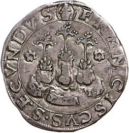 Los-Nummer: Auktion 51 - 3208 Ausländische Münzen und Medaillen Italien-Mailand Francesco II. Sforza 1522-1535, Semprevivo da 10 Soldi o.J. Drei Blumenkübel / Gekröntes Wappen. CNI 5.226.18. Sehr schön Schätzpreis: 200,- Zuschlag: 170,- |