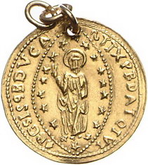 Los-Nummer: Auktion 51 - 3351 Ausländische Münzen und Medaillen Italien-Venedig Francesco Loredan 1752-1762, Zecchino o.J. Nachahmung einer unbekannten, wahrscheinlich italienischen Münzstätte. FRANC LAURED-SM.VENET Kniender Doge vor Christus / SITXPBDATQIVI- BGSIS9BDVCA Christus in Mandorla. Gamberini (imitazioni) -. GOLD. Gelocht, sehr schön Schätzpreis: 100,- Zuschlag: unverkauft |