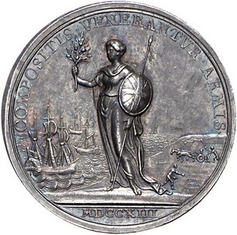 Los-Nummer: Auktion 51 - 3097 Ausländische Münzen und Medaillen Großbritannien Anne 1702-1714, Medaille 1713, von Croker. Auf den Frieden von Utrecht. Brustbild nach links / Stehende Britannia vor Schiffen. Eimer 460, Med. Illustrations Tf. 135/11-12. 35 mm, 16,18 g. Sehr schön - vorzüglich Schätzpreis: 100,- Zuschlag: 110,- |