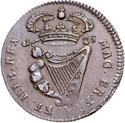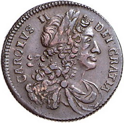 Los-Nummer: Auktion 51 - 3160 Ausländische Münzen und Medaillen Irland Charles II. 1645-1685, Cu Halfpenny 1683. Seaby 6575. Winz. Prägeschwäche, sehr schön - vorzüglich Schätzpreis: 250,- Zuschlag: 325,- |
