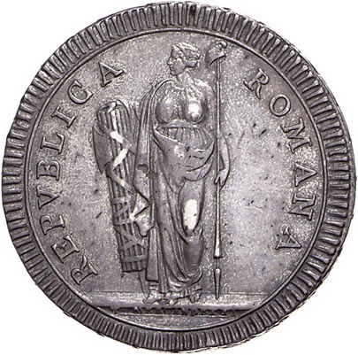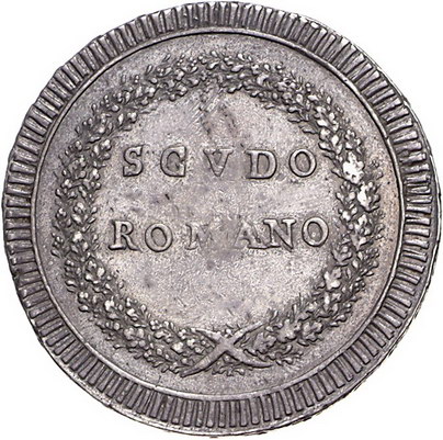 Los-Nummer: Auktion 51 - 3229 Ausländische Münzen und Medaillen Italien-Römische Republik Scudo o.J., Rom. Muntoni 1, Davenport 1486. Sehr schön Schätzpreis: 500,- Zuschlag: 410,- |