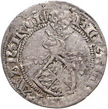 Los-Nummer: Auktion 51 - 3397 Ausländische Münzen und Medaillen Luxemburg Elisabeth von Görlitz 1425-1451, Halbgroschen, Luxemburg. Behelmter Schild Pfalz-Bayern / Langkreuz auf Achtpass, belegt mit Schild Luxemburg. Weiller 193. Fast sehr schön Schätzpreis: 150,- Zuschlag: 120,- |