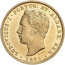 Los-Nummer: Auktion 51 - 3653 Ausländische Münzen und Medaillen Portugal Luis I. 1861-1889, 5000 Reis 1876. Friedberg 153. GOLD. Vorzüglich - Stempelglanz Schätzpreis: 300,- Zuschlag: 640,- |