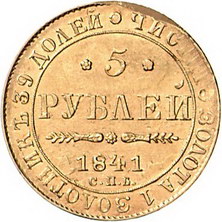 Los-Nummer: Auktion 51 - 3802 Ausländische Münzen und Medaillen Russland Nikolaus I. 1825-1855, 5 Rubel 1841, St. Petersburg. Münzmeister Alexei Chadov. Harris 346, Friedberg 155, Bitkin 18. GOLD. Feilspur am Rand, vorzüglich Schätzpreis: 400,- Zuschlag: unverkauft |