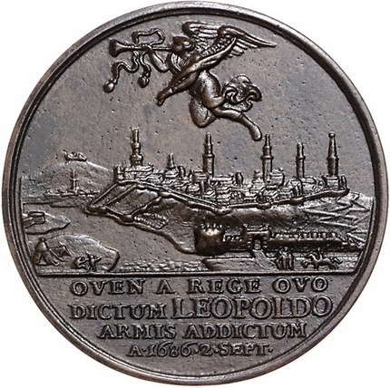 Los-Nummer: Auktion 51 - 2104 Haus Habsburg Haus Habsburg Leopold I. 1657-1705, Bronzegussmedaille 1686. Auf die Einnahme von Ofen. Engel über der Ansicht von Ofen / Adler mit Schlüssel auf Felsen. Slg. Montenuovo 988 , Slg. Julius 295. 44 mm. Sehr schön - vorzüglich Schätzpreis: 90,- Zuschlag: 110,- |