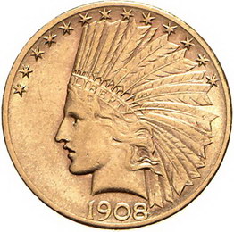 Los-Nummer: Auktion 51 - 4088 Ausländische Münzen und Medaillen Vereinigte Staaten von Amerika 10 Dollars 1908 D. Indian Head. Friedberg 168. GOLD. Sehr schön - vorzüglich Schätzpreis: 350,- Zuschlag: 455,- |