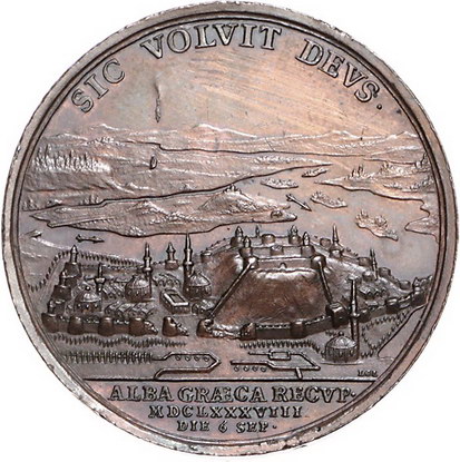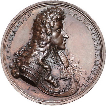 Los-Nummer: Auktion 51 - 2110 Haus Habsburg Haus Habsburg Leopold I. 1657-1705, Bronzemedaille 1688, von Hautsch. Auf die Einnahme von Belgrad. Brustbild Maximilian Emanuels von Bayern nach rechts / Belgrad und das angrenzende Flussgebiet. Slg. Montenuovo 1077 , Slg. Julius 352, Wittelsbach 1500. 42,5 mm. Randfehler, vorzüglich Schätzpreis: 125,- Zuschlag: 220,- |