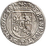 Los-Nummer: Auktion 51 - 2246 Haus Habsburg Neufürsten-Trautson Johann Franz 1620-1663, Groschen 1638. Brustbild nach rechts / Gekröntes Wappen. Slg. Hohenkubin 1350, Slg. Windisch-Graetz 917. Sehr selten. Fast sehr schön Schätzpreis: 125,- Zuschlag: 110,- |
