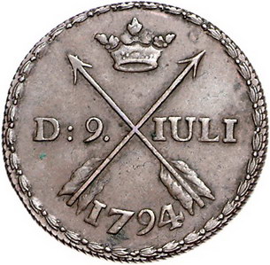 Los-Nummer: Auktion 51 - 3948 Ausländische Münzen und Medaillen Schweden Gustav IV. Adolf 1792-1809, Cu 1/2 Skilling 1794. Auf den Besuch des Königs in Avesta. S.M. 52 b. Sehr schön - vorzüglich Schätzpreis: 250,- Zuschlag: 310,- |