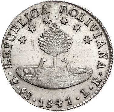 Los-Nummer: Auktion 51 - 2916 Ausländische Münzen und Medaillen Bolivien Republik seit, 8 Soles 1841. K.M. 103. Fast vorzüglich Schätzpreis: 125,- Zuschlag: unverkauft |