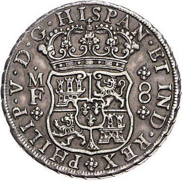 Los-Nummer: Auktion 51 - 3429 Ausländische Münzen und Medaillen Mexiko Felipe V. 1700-1746, 8 Reales 1741 M/F, Mexico. Calicó/Trigo 704. Sehr schön + Schätzpreis: 150,- Zuschlag: 250,- |