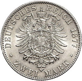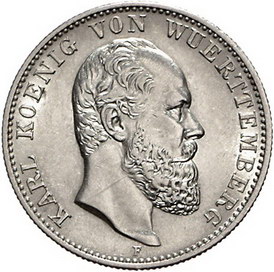 Los-Nummer: Auktion 51 - 2725 Münzen des Deutschen Kaiserreichs Württemberg Karl 1864-1891, 2 Mark 1877 F. Jaeger 172. Winz. Kratzer, vorzüglich + Schätzpreis: 300,- Zuschlag: unverkauft |