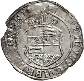 Los-Nummer: Auktion 51 - 717 Altdeutsche Münzen und Medaillen Corvey, Abtei Heinrich V. von Aschenbrock 1616-1621, Kipper 12 Kreuzer o.J., Höxter. Weingärtner 94, Schwede 150 B/c. Randfehler, sehr schön Schätzpreis: 150,- Zuschlag: 230,- |