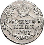 Los-Nummer: Auktion 51 - 3723 Ausländische Münzen und Medaillen Russland Katharina II. 1762-1796, Grivennik 1787, St. Petersburg. Harris 147, Diakov 560, Bitkin 504. Vorzüglich Schätzpreis: 200,- Zuschlag: unverkauft |