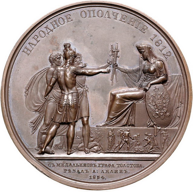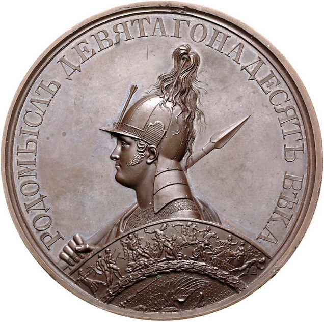 Los-Nummer: Auktion 51 - 3809 Ausländische Münzen und Medaillen Russland Nikolaus I. 1825-1855, Bronzemedaille 1834, von Kleptikov und Lyalin. Behelmtes Brustbild Alexanders I. in antiker Rüstung und reich verziertem Schild / Thronendes antikisiertes Russland empfängt Schwerter von drei Soldaten. Diakov 1762 , Sminov 371. 66 mm. Stempelglanz Schätzpreis: 200,- Zuschlag: 340,- |
