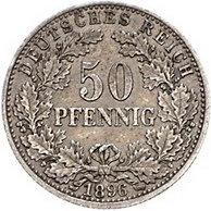 Los-Nummer: Auktion 51 - 2557 Münzen des Deutschen Kaiserreichs Kleinmünzen 50 Pfennig 1896 A. Jaeger 15. Sehr schön Schätzpreis: 200,- Zuschlag: 190,- |