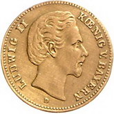 Los-Nummer: Auktion 51 - 2586 Münzen des Deutschen Kaiserreichs Bayern Ludwig II. 1864-1886, 5 Mark 1877 D. Jaeger 195. GOLD. Sehr schön Schätzpreis: 300,- Zuschlag: unverkauft |
