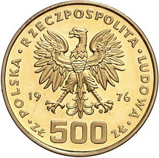 Los-Nummer: Auktion 51 - 3609 Ausländische Münzen und Medaillen Polen Volksrepublik 1952-1989, 500 Zlotych 1976. Tadeusz Kosciuszko. Parchimowicz 320. Auflage 2318 Stück. GOLD. Winz. Kratzer, winz. Randfehler, Polierte Platte Schätzpreis: 900,- Zuschlag: 1100,- |