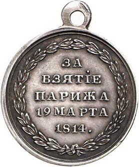 Los-Nummer: Auktion 51 - 3775 Ausländische Münzen und Medaillen Russland Alexander I. 1801-1825, Militärverdienstmedaille 1814. Auf die Einnahme von Paris. Unter strahlendem Dreieck Kopf des Zaren nach rechts / Schrift in Kranz. Diakov 375.1, Smirnov 393 a. 28,5 mm, 11,78 g. Originalöse. Fast vorzüglich Schätzpreis: 1000,- Zuschlag: 1075,- |