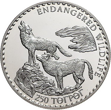Los-Nummer: Auktion 51 - 3440 Ausländische Münzen und Medaillen Mongolei 250 Tugrik 1992. Zwei Wölfe. K.M. -. Äußerst seltener Jahrgang. Polierte Platte Schätzpreis: 100,- Zuschlag: 80,- |