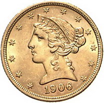 Los-Nummer: Auktion 51 - 4080 Ausländische Münzen und Medaillen Vereinigte Staaten von Amerika 5 Dollars 1906. Coronet Head. Friedberg 143. GOLD. Winz. Randfehler, vorzüglich Schätzpreis: 150,- Zuschlag: 240,- |