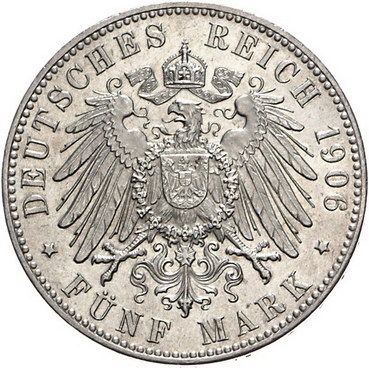 Los-Nummer: Auktion 51 - 2604 Münzen des Deutschen Kaiserreichs Bremen 2 Mark 1904 J. 5 Mark 1906 J. Jaeger 59, 60. 2 Stück. Vorzüglich Schätzpreis: 250,- Zuschlag: unverkauft |