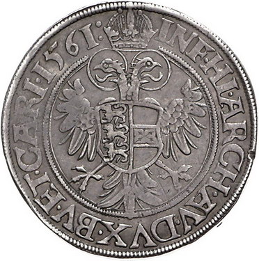 Los-Nummer: Auktion 51 - 1972 Haus Habsburg Haus Habsburg Ferdinand I. 1521-1564, Guldentaler 1561, Klagenfurt. Geharnischtes Hüftbild mit Zepter und Reichsapfel mit 60 / Gekrönter Doppeladler mit dem Kärntner Wappenschild auf der Brust. Davenport 35, Voglhuber 59. Sehr schön + Schätzpreis: 600,- Zuschlag: unverkauft |