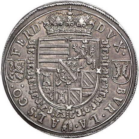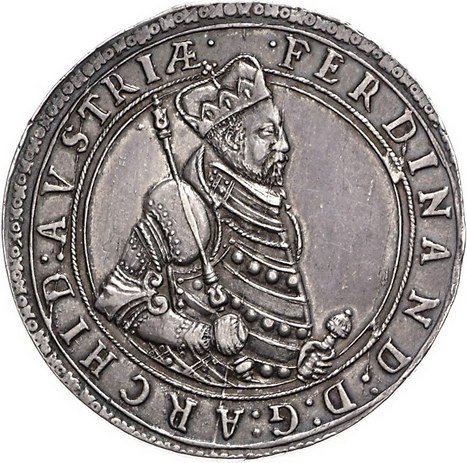 Los-Nummer: Auktion 51 - 1994 Haus Habsburg Haus Habsburg Erzherzog Ferdinand II. 1564-1595, Breiter Doppeltaler o.J., Ensisheim. Geharnischtes Hüftbild mit geschultertem Zepter nach rechts, die Linke hält Kommandostab / Gekröntes vierfeldiges Wappen mit Mittelschild. Davenport 8093, E.u.L. 14. Schöne Patina. Vorzüglich / fast Stempelglanz Schätzpreis: 1500,- Zuschlag: 1500,- |