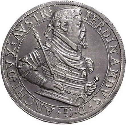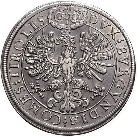 Los-Nummer: Auktion 51 - 1997 Haus Habsburg Haus Habsburg Erzherzog Ferdinand II. 1564-1595, Breiter Doppeltaler o.J., Hall. Geharnischtes Hüftbild mit geschultertem Zepter nach rechts, die Linke hält Kommandostab / Lorbeerbekränzter, gekrönter Tiroler Adler. Davenport 8111, Moser/Tursky 317. Felder leicht geglättet, sehr schön - vorzüglich Schätzpreis: 600,- Zuschlag: 700,- |