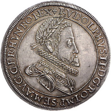 Los-Nummer: Auktion 51 - 2011 Haus Habsburg Haus Habsburg Rudolf II. 1576-1612, Taler o.J. (1604/05), Ensisheim. Brustbild mit Mühlsteinkragen nach rechts / Gekröntes vielfeldiges Wappen. Moser/Tursky 586 var, Voglhuber 95/1 var, Davenport 3032. Schöne Patina. Vorzüglich + Schätzpreis: 600,- Zuschlag: unverkauft |