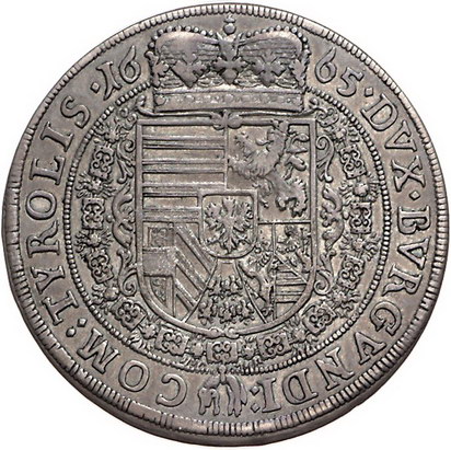 Los-Nummer: Auktion 51 - 2066 Haus Habsburg Haus Habsburg Erzherzog Sigismund Franz 1663-1665, Taler 1665, Hall. Drapiertes und geharnischtes Brustbild nach rechts / Erzherzogshut über vierfeldigem Wappen mit Tiroler Mittelschild. Voglhuber 186/2, Moser/Tursky 531, Davenport 3370. Sehr schön + Schätzpreis: 400,- Zuschlag: 400,- |