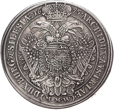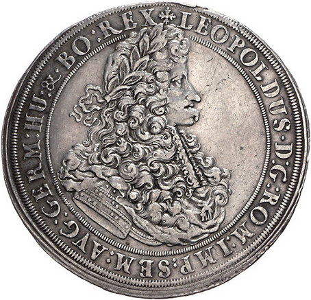 Los-Nummer: Auktion 51 - 2079 Haus Habsburg Haus Habsburg Leopold I. 1657-1705, Taler 1695, Breslau. Münzmeister Martin Maximilian von Wackerl. Geharnischtes Brustbild mit großer Perücke nach rechts / Gekrönter Doppeladler mit Schwert und Zepter, auf der Brust vielfeldiges ovales Wappen. Herinek 696, Davenport 3300 , Fr.u.S. 607. Sehr schön - vorzüglich Schätzpreis: 1400,- Zuschlag: unverkauft |
