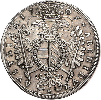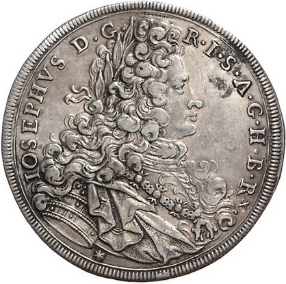 Los-Nummer: Auktion 51 - 2133 Haus Habsburg Haus Habsburg Josef I. 1705-1711, Taler 1705, München. Brustbild im Harnisch und mit übergeworfenem Mantel nach rechts / Gekrönter Doppeladler. Herinek 158 a, Davenport 1034 , Hahn 233. Kl. Flecken, sehr schön Schätzpreis: 500,- Zuschlag: 480,- |