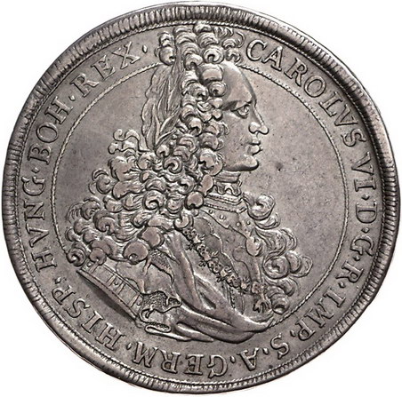 Los-Nummer: Auktion 51 - 2158 Haus Habsburg Haus Habsburg Karl VI. 1711-1740, Taler 1712, Siebenbürgen. Geharnischtes und belorbeertes Brustbild mit Allongeperücke nach rechts / Gekrönter Doppeladler mit Schwert und Zepter, auf der Brust herzförmiges siebenbürgisches Wappen mit Ordenskette. Herinek 460, Davenport 1100 , Resch 3. Sehr selten. Sehr schön Schätzpreis: 2750,- Zuschlag: 3400,- |