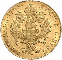 Los-Nummer: Auktion 51 - 2193 Haus Habsburg Haus Habsburg Leopold II. 1790-1792, Dukat 1791 B, Kremnitz. Herinek 5, Jaeger/Jaeckel 82, Friedberg 206. GOLD. Sehr schön - vorzüglich Schätzpreis: 900,- Zuschlag: 800,- |