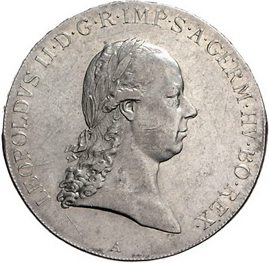 Los-Nummer: Auktion 51 - 2194 Haus Habsburg Haus Habsburg Leopold II. 1790-1792, Taler 1792 A, Wien. Herinek -, zu 34, Jaeger/Jaeckel 81, Davenport 1173. Winz. Kratzer, vorzüglich Schätzpreis: 900,- Zuschlag: 1300,- |