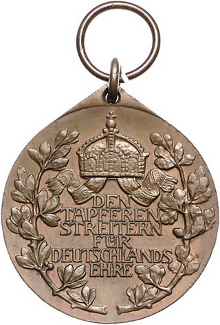 Los-Nummer: Auktion 51 - 2492 Medaillen Kolonien Bronze Kolonialdenkmünze#0Medaille# für Weiße, gestiftet 1912 von Kaiser Wilhelm II. Für Teilnehmer an militärischen Unternehmungen in den Schutzgebieten. Brustbild rechts / Krone über Schrift zwischen Eichenzweigen. Slg. Grönegreß -, Hüsken 11.10 a. 32,5 mm. Ohne Band. Vorzüglich Schätzpreis: 75,- Zuschlag: 110,- |