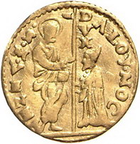 Los-Nummer: Auktion 51 - 3305 Ausländische Münzen und Medaillen Italien-Venedig Alvise I. Mocenigo 1570-1577, Zecchino. 3,42 g. Gamberini 452, Friedberg 1263, Paolucci S. 68, 2. GOLD. Fast sehr schön Schätzpreis: 125,- Zuschlag: 170,- |